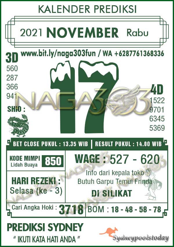 Prediksi SydneyPools Rabu 17 November 2021 | Web Toto Naga303