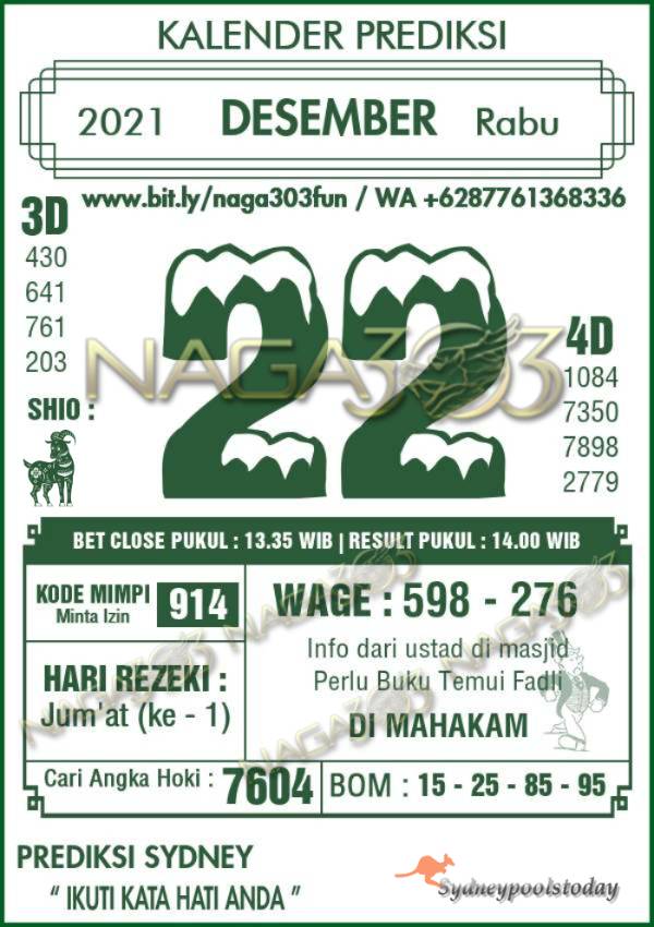 Prediksi SydneyPools Rabu 22 Desember 2021