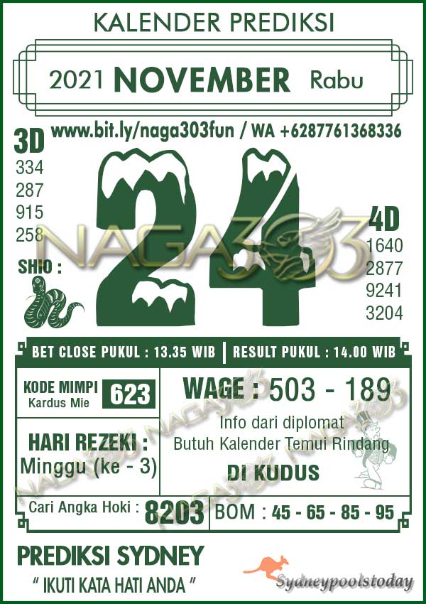 Prediksi SydneyPools Rabu 24 November 2021 | Web Toto Naga303