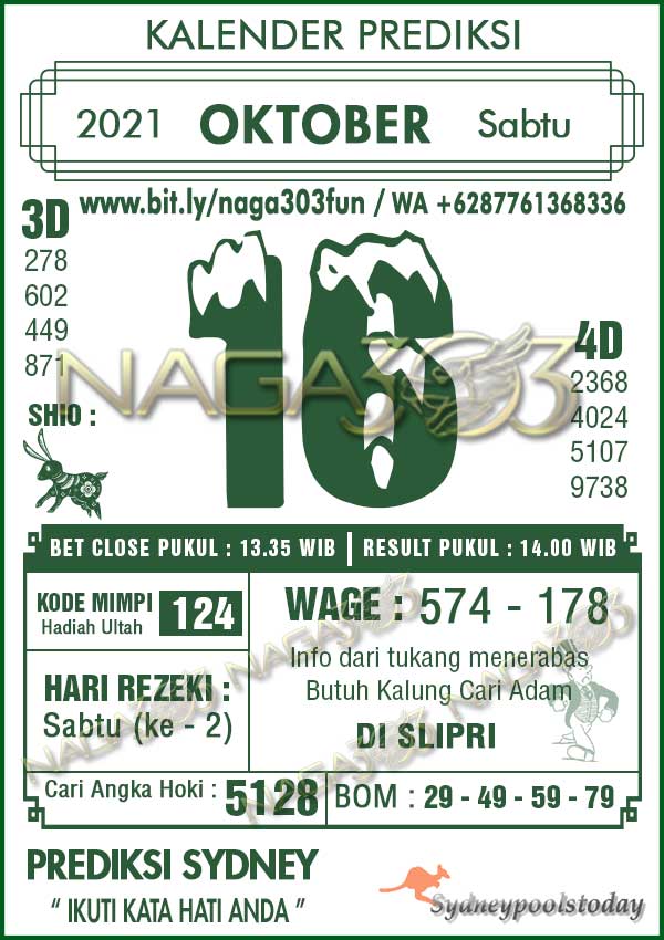 Prediksi SydneyPools Sabtu 16 Oktober 2021 | Web Toto Naga303
