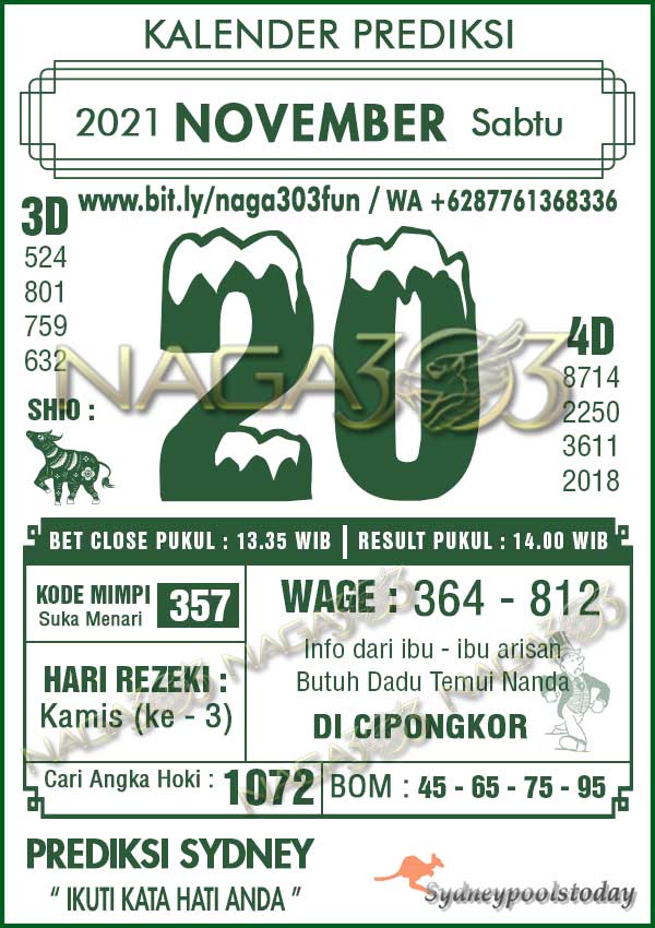 Prediksi SydneyPools Sabtu 20 November 2021