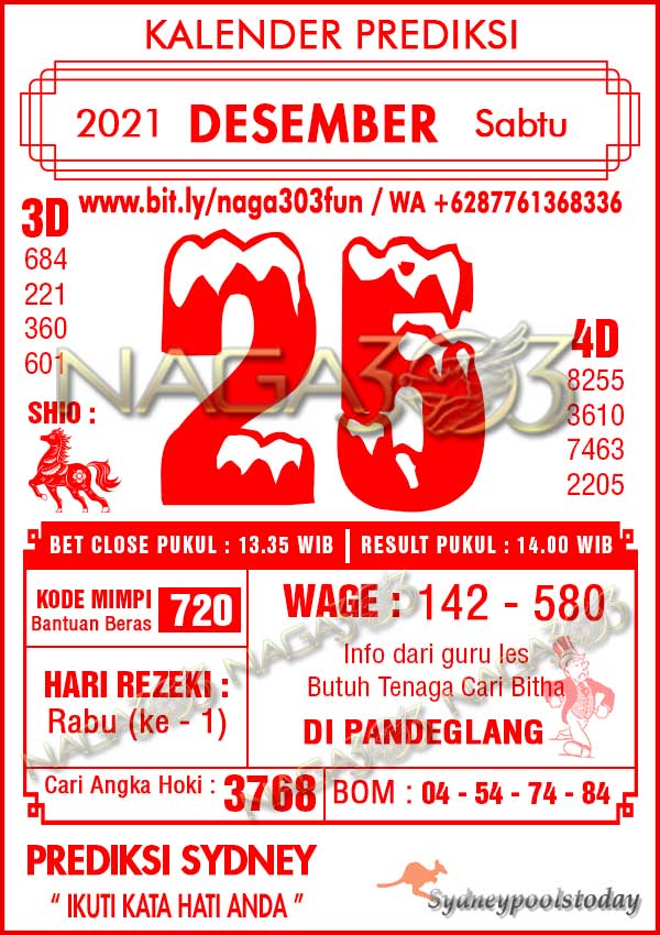 Prediksi SydneyPools Sabtu 25 Desember 2021 | Web Toto Naga303