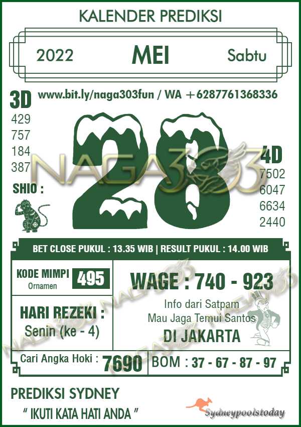 untuk informasi mengenai Prediksi Togel Sydney, ini lah yang tadi kami bahas semoga bermanfaat prediksinya dan semoga anda beruntung. Salam Hokky…