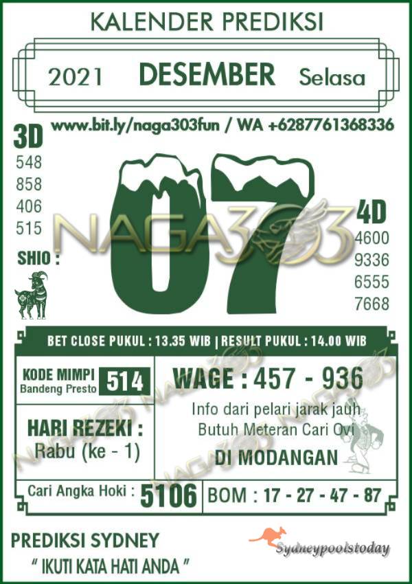 Prediksi SydneyPools Selasa 07 Desember 2021 | Web Toto Naga303