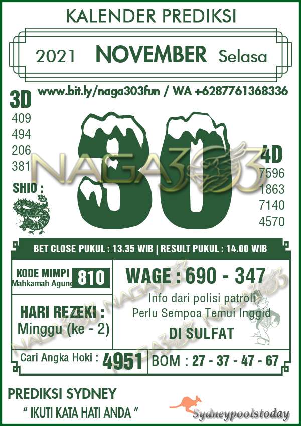 Prediksi SydneyPools Selasa 30 November 2021 | Web Toto Naga303