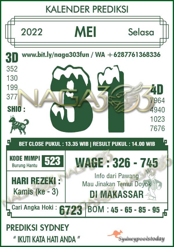 untuk informasi mengenai Prediksi Togel Sydney, ini lah yang tadi kami bahas semoga bermanfaat prediksinya dan semoga anda beruntung. Salam Hokky…