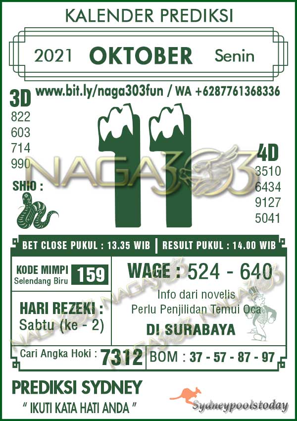 Prediksi SydneyPools Senin 11 Oktober 2021 | Web Toto Naga303