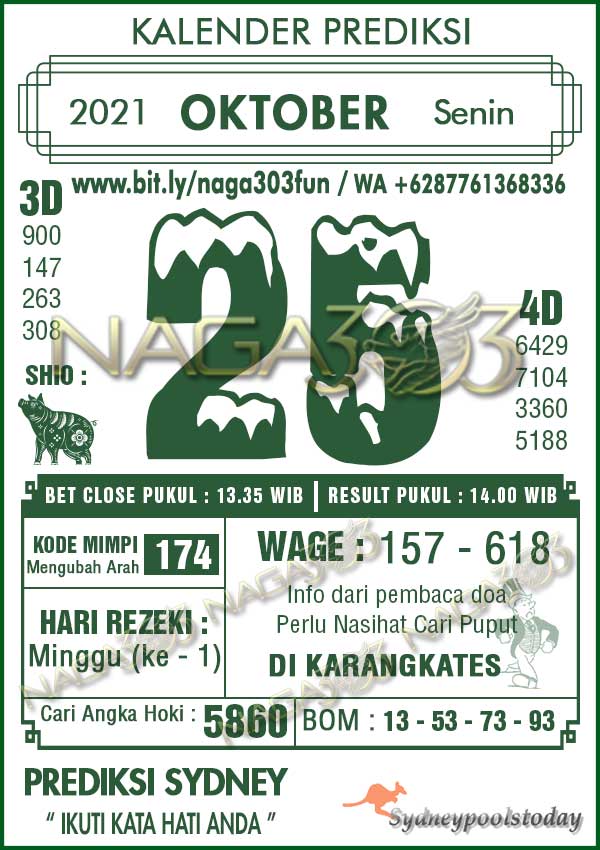 Prediksi SydneyPools Senin 25 Oktober 2021 | Web Toto Naga303