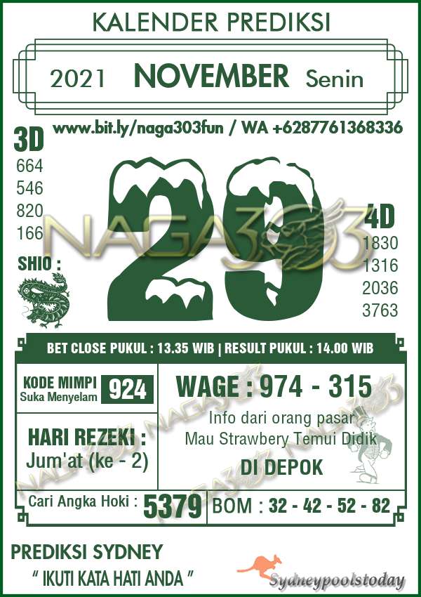 Prediksi SydneyPools Senin 29 November 2021 | Web Toto Naga303