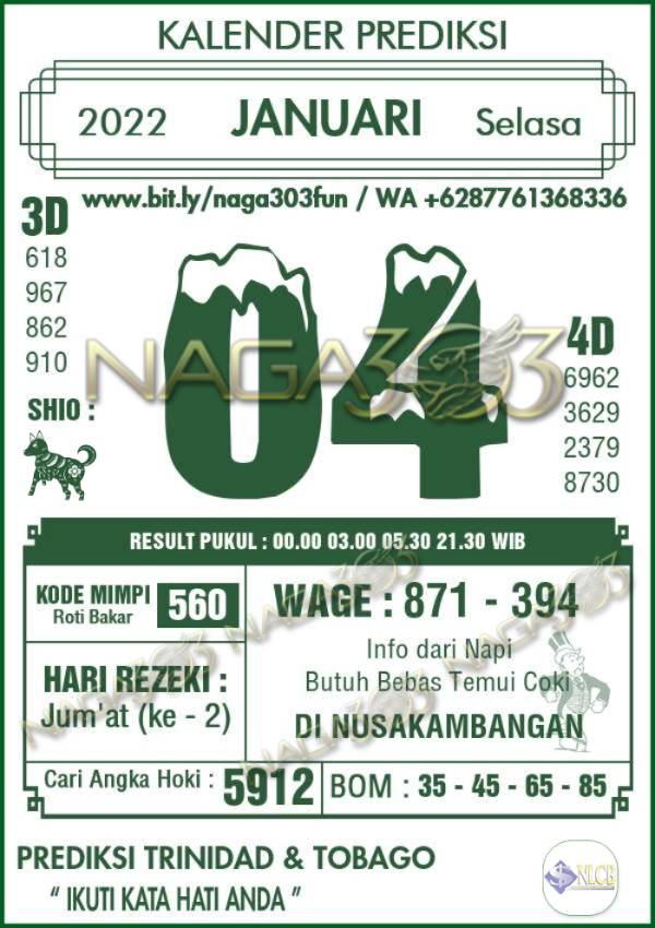 Prediksi Trinidad & Tobago Pools Selasa 04 Januari 2022 | Web Toto Naga303