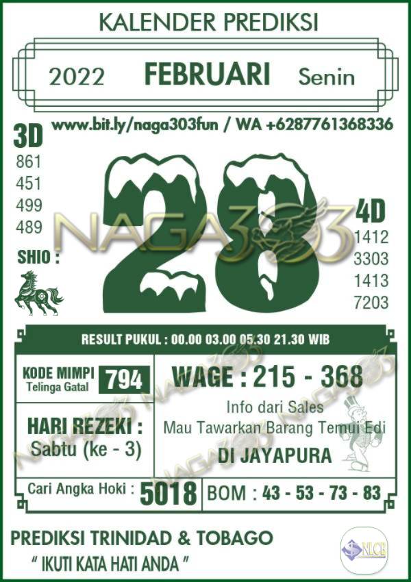 Prediksi Trinidad & Tobago Pools Senin 28 Februari 2022 | Web Toto Naga303