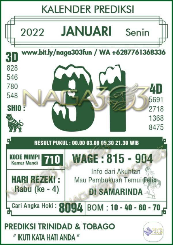 Prediksi Trinidad & Tobago Pools Senin 31 Januari 2022