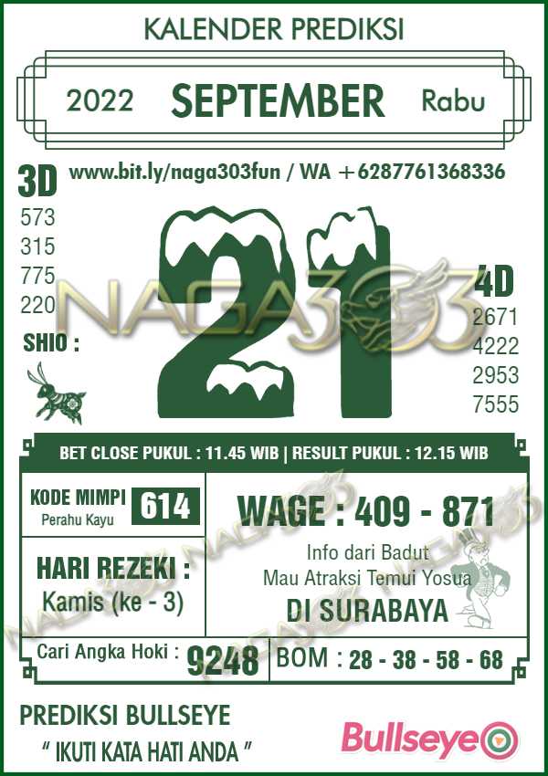 Prediksi Bulls Eye Pools Rabu 21 September 2022