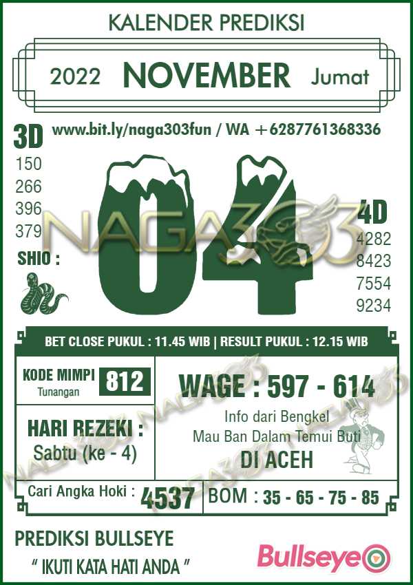 Prediksi Bullseye Jumat 04 November 2022 | Web Toto Naga303