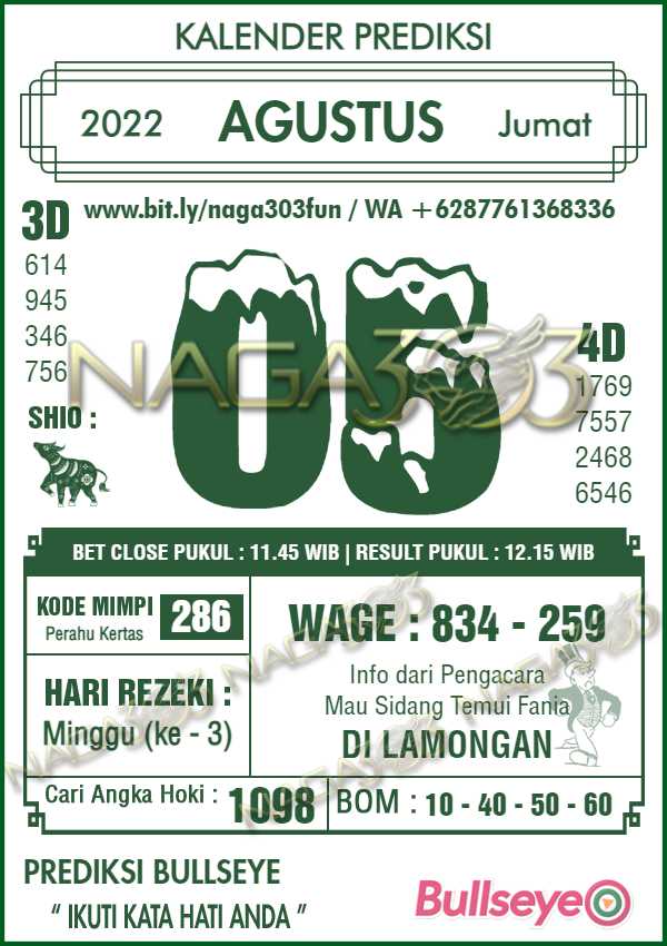 Prediksi Bullseye Jumat 05 Agustus 2022