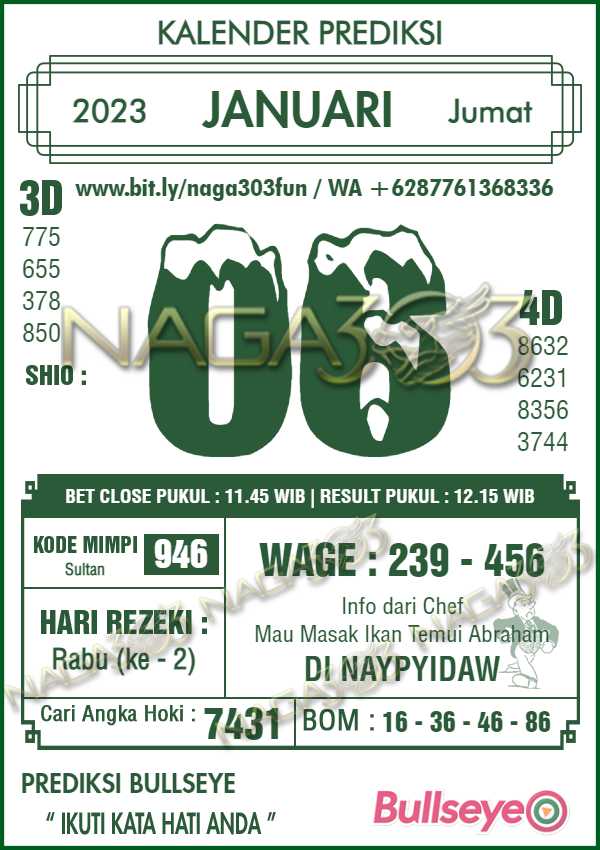 Prediksi Bullseye Jumat 06 Januari 2023 | Web Toto Naga303