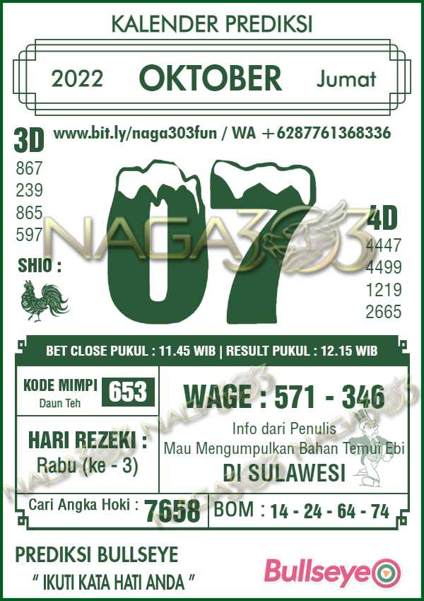 Prediksi Bullseye Jumat 07 Oktober 2022