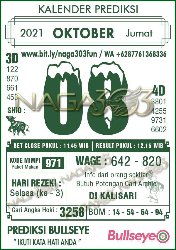 Prediksi Bullseye Jumat 08 Oktober 2021