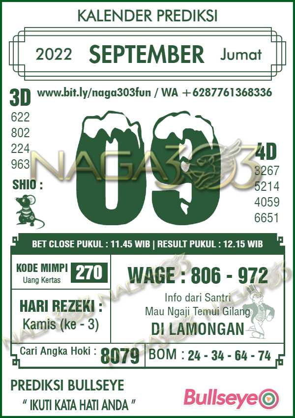 Prediksi Bullseye Jumat 09 September 2022 | Web Toto Naga303