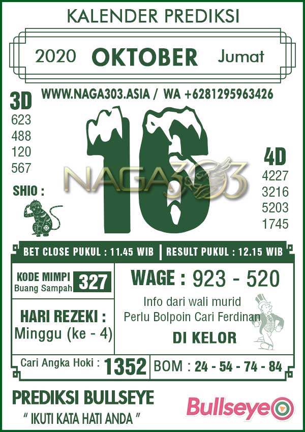 Prediksi Bullseye Jumat 16 Oktober 2020 | Web Toto Naga303