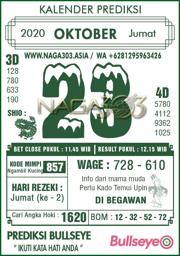 Prediksi Bullseye Jumat 23 Oktober 2020 | Web Toto Naga303