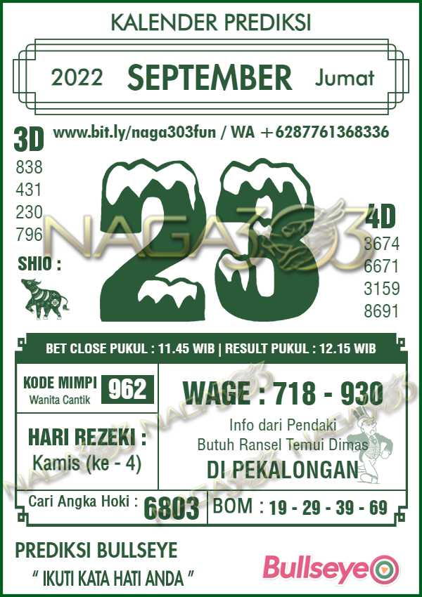 Prediksi Bullseye Jumat 23 September 2022 | Web Toto Naga303