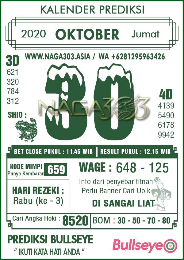 Prediksi Bullseye Jumat 30 Oktober 2020 | Web Toto Naga303