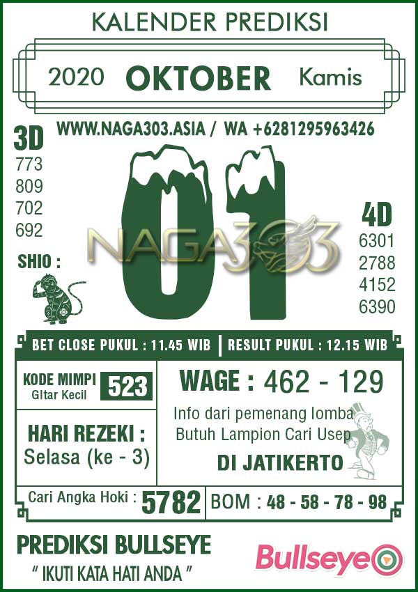 Prediksi Bullseye Kamis 01 Oktober 2020