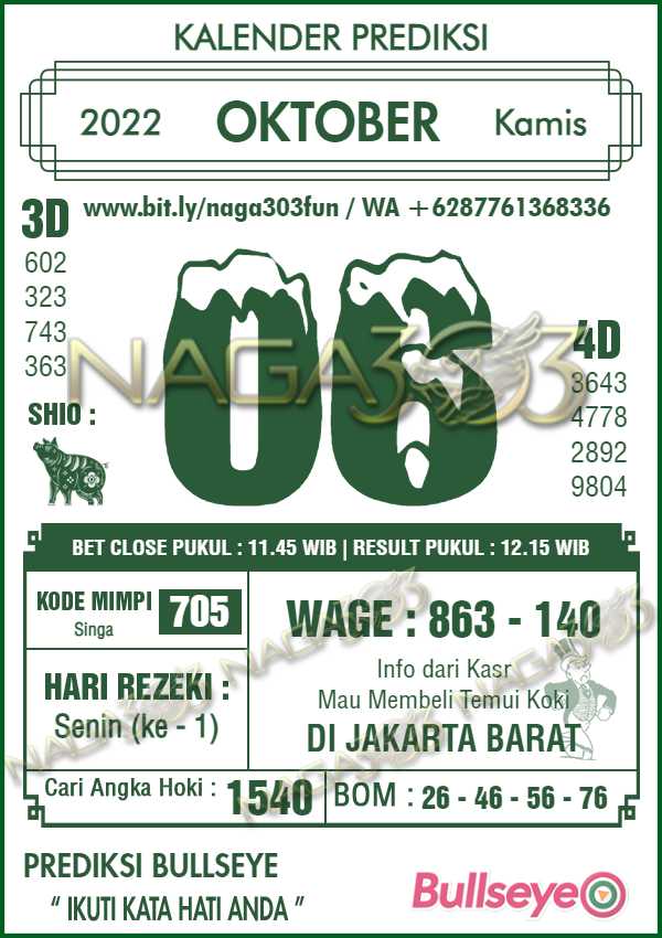 Prediksi Bullseye Kamis 06 Oktober 2022
