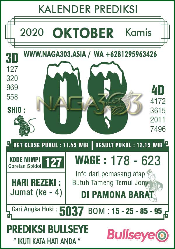 Prediksi Bullseye Kamis 08 Oktober 2020