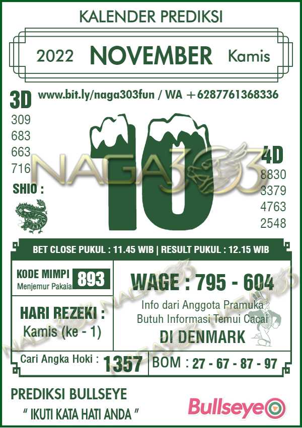 Prediksi Bullseye Kamis 10 November 2022 | Web Toto Naga303