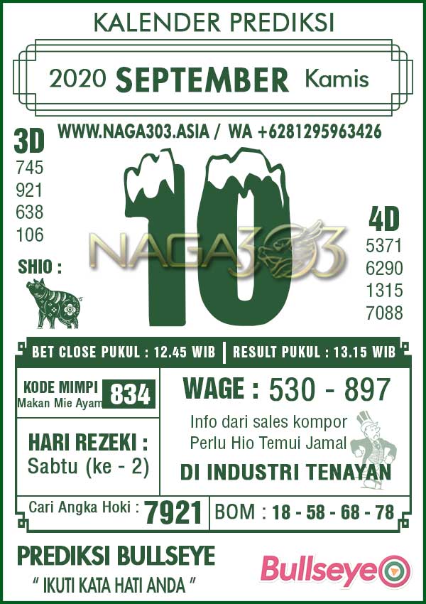 Prediksi Bullseye Kamis 10 September 2020 | Web Toto Naga303