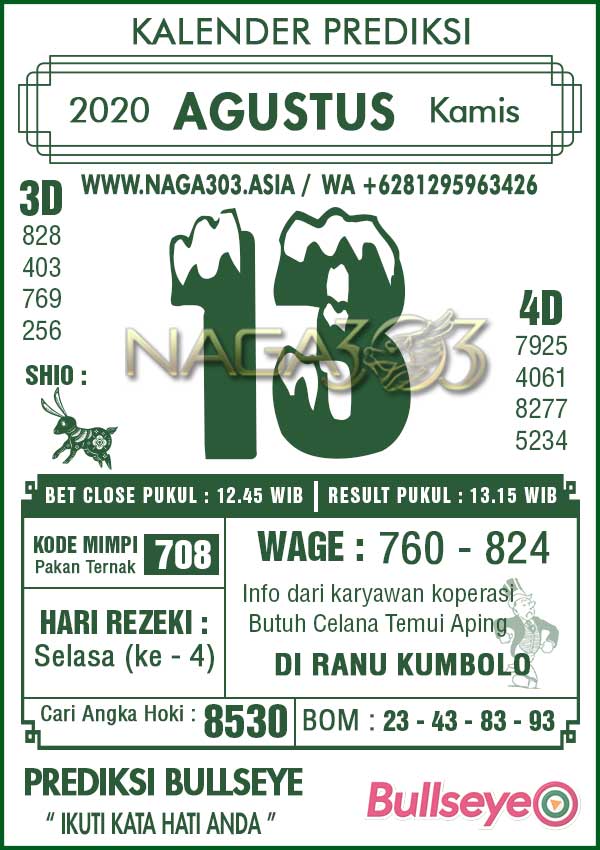 Prediksi Bullseye Kamis 13 Agustus 2020