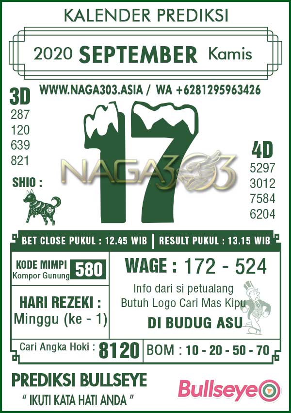 Prediksi Bullseye Kamis 17 September 2020