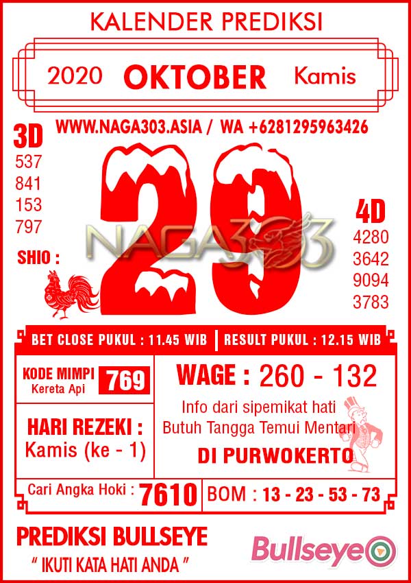 Prediksi Bullseye Kamis 29 Oktober 2020