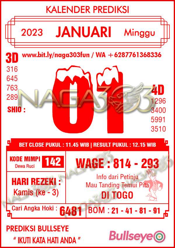 Prediksi Bullseye Minggu 01 Januari 2023