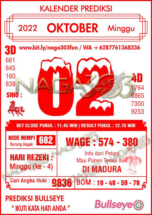 Prediksi Bullseye Minggu 02 Oktober 2022