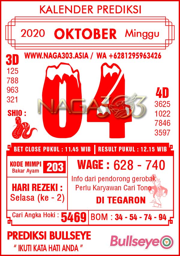 Prediksi Bullseye Minggu 04 Oktober 2020 | Web Toto Naga303
