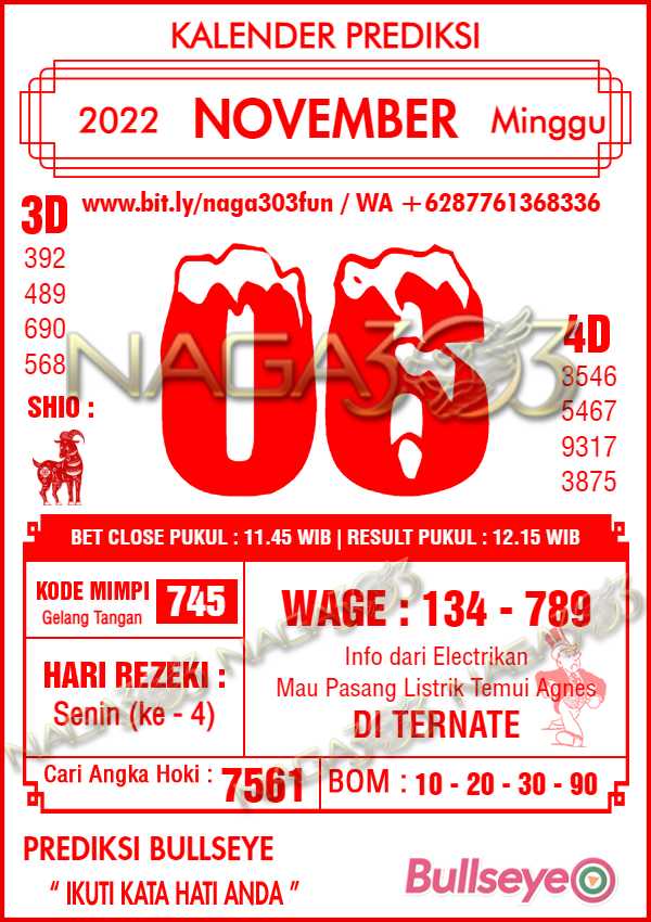 Prediksi Bullseye Minggu 06 November 2022 | Web Toto Naga303