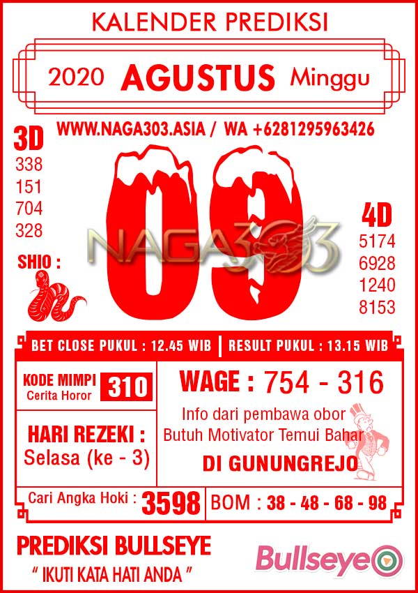 Prediksi Bullseye Minggu 09 Agustus 2020