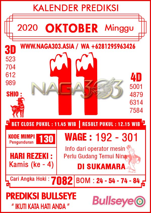 Prediksi Bullseye Minggu 11 Oktober 2020 | Web Toto Naga303