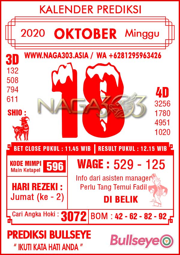 Prediksi Bullseye Minggu 18 Oktober 2020 | Web Toto Naga303
