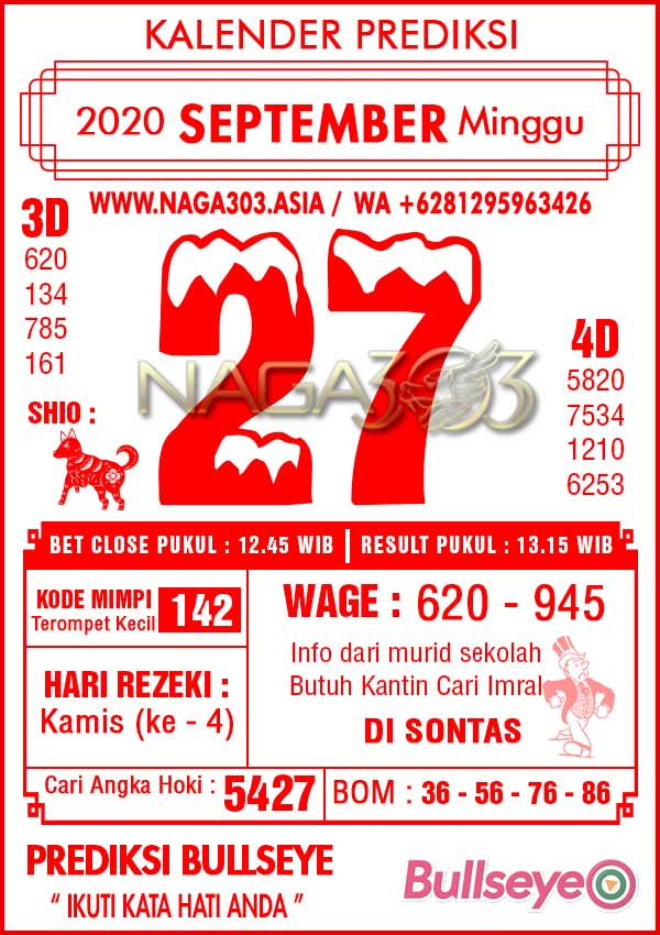 Prediksi Bullseye Minggu 27 September 2020