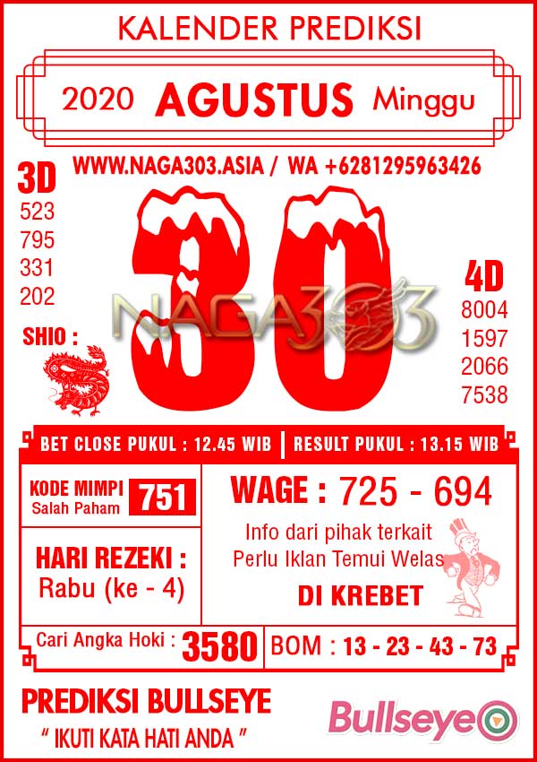 Prediksi Bullseye Minggu 30 Agustus 2020