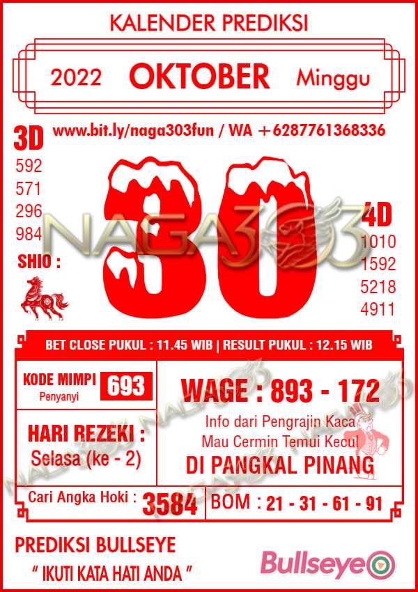 Prediksi Bullseye Minggu 30 Oktober 2022 | Web Toto Naga303