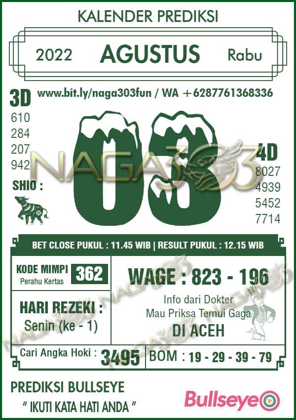 Prediksi Bullseye Rabu 03 Agustus 2022