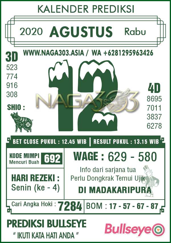 Prediksi Bullseye Rabu 12 Agustus 2020 | Web Toto Naga303
