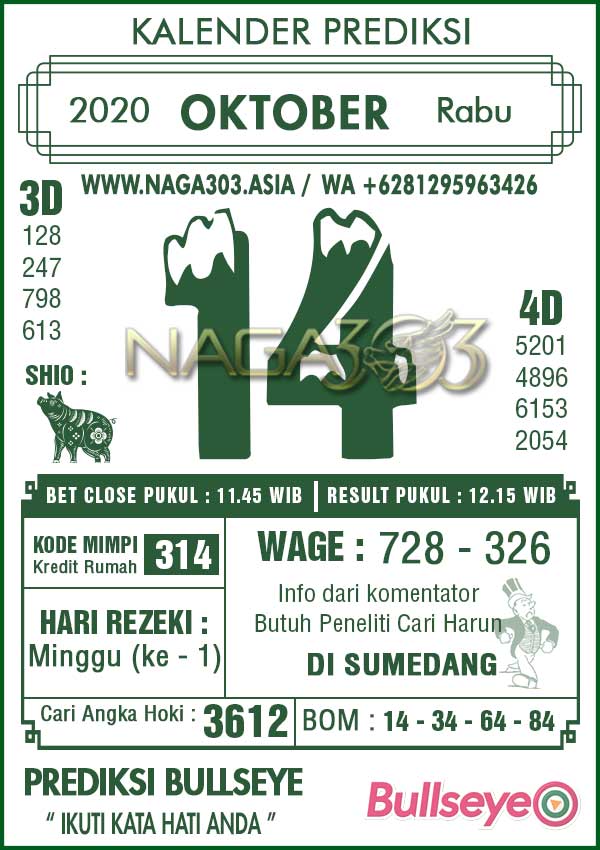 Prediksi Bullseye Rabu 14 Oktober 2020