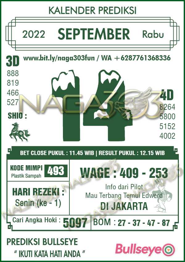 Prediksi Bullseye Rabu 14 September 2022 | Web Toto Naga303