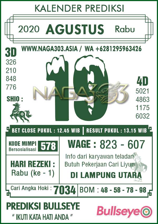 Prediksi Bullseye Rabu 19 Agustus 2020